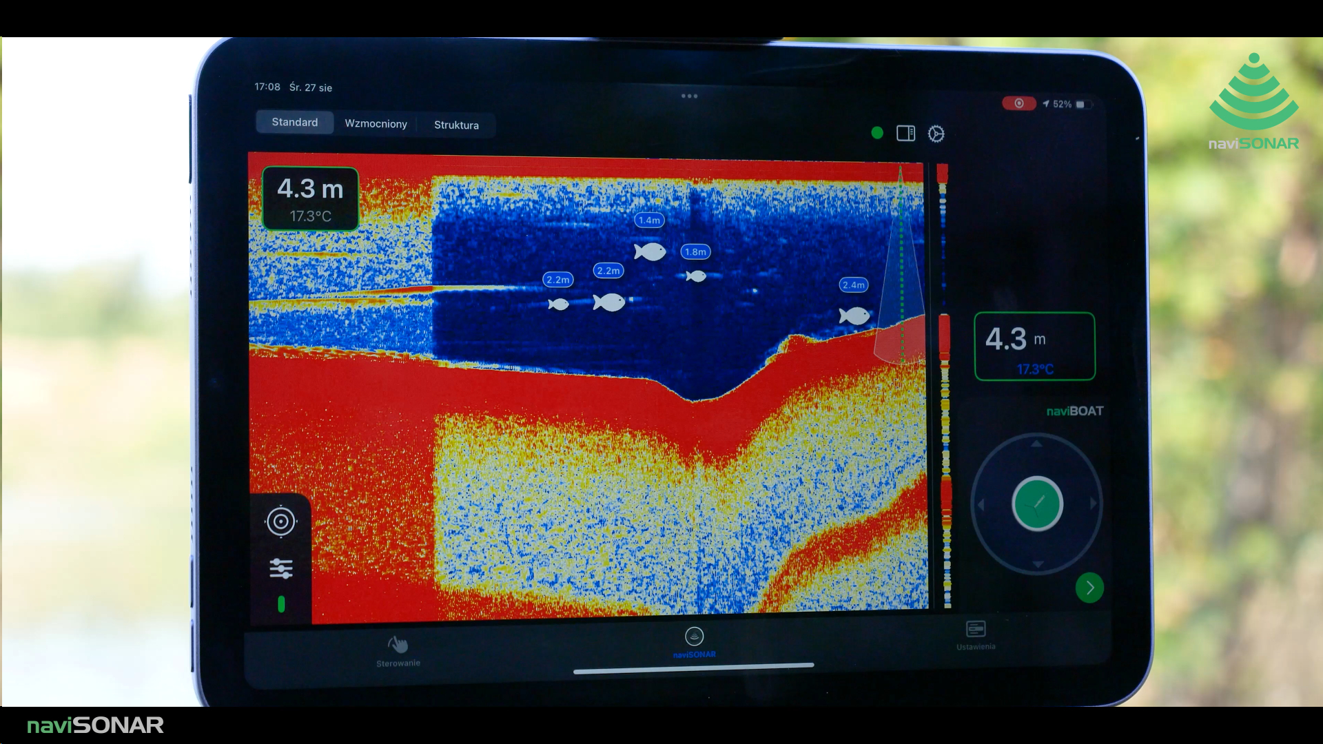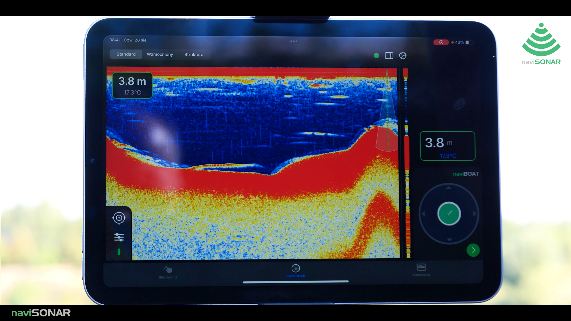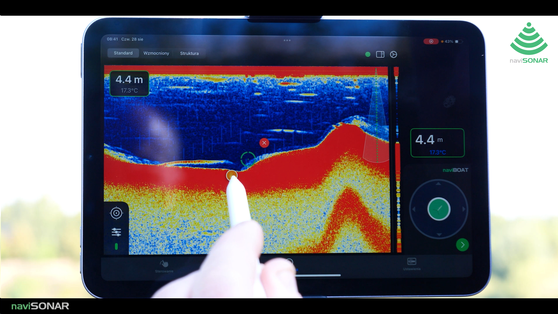 naviSONAR działa niezależnie od naviBOAT w podstawowych funkcjach echosondy.